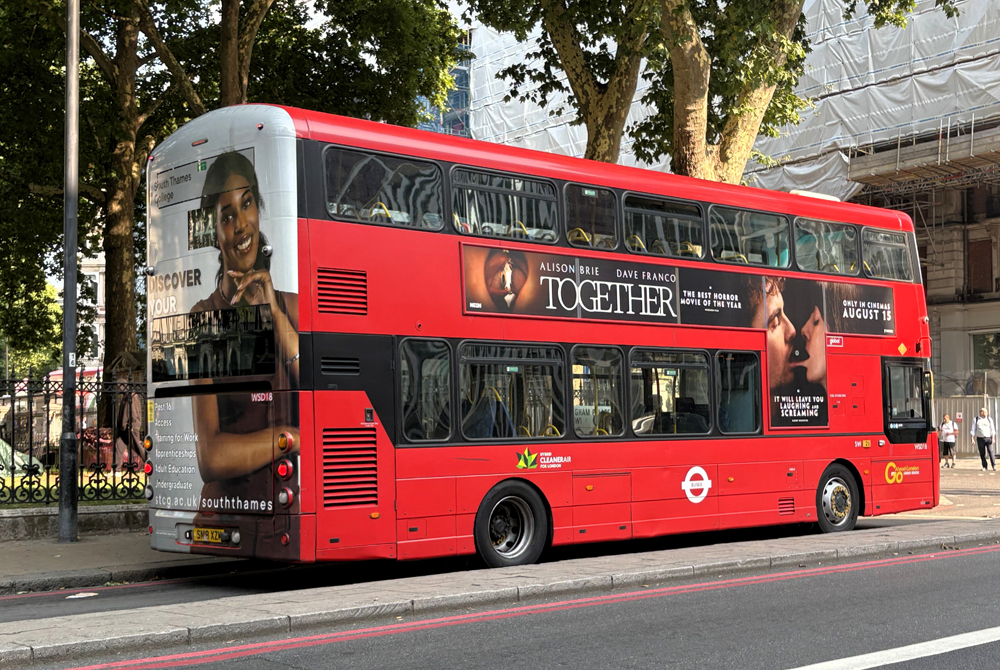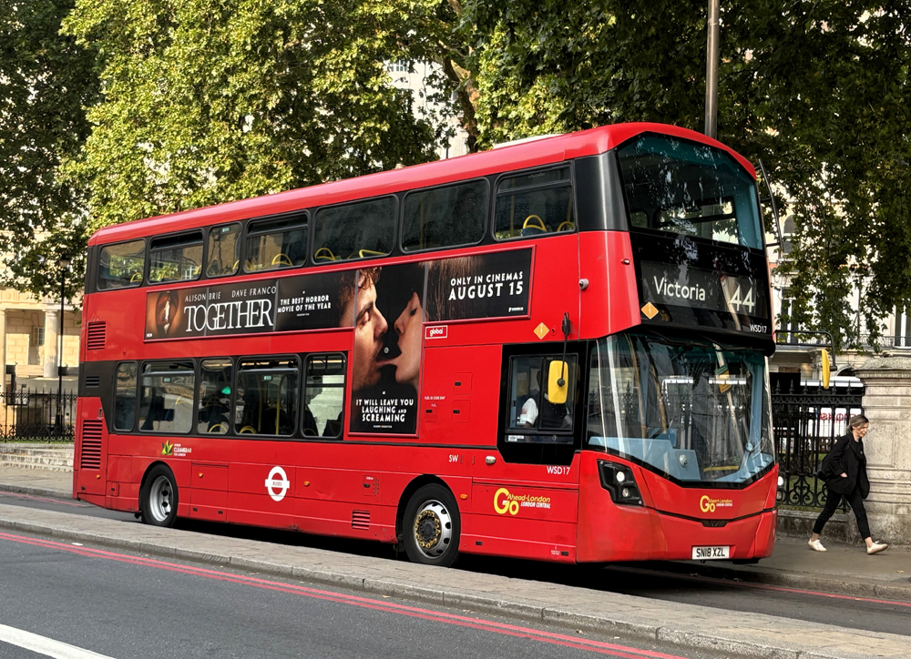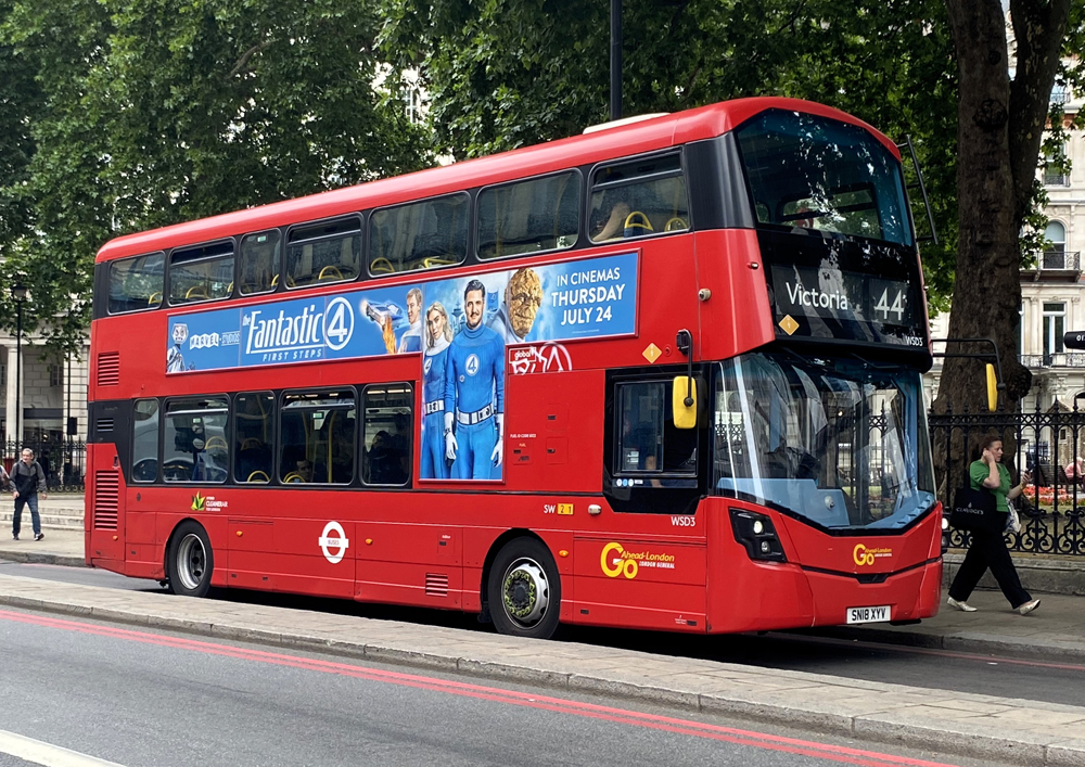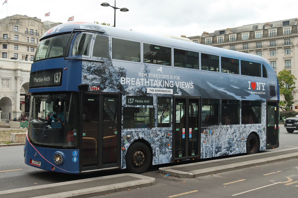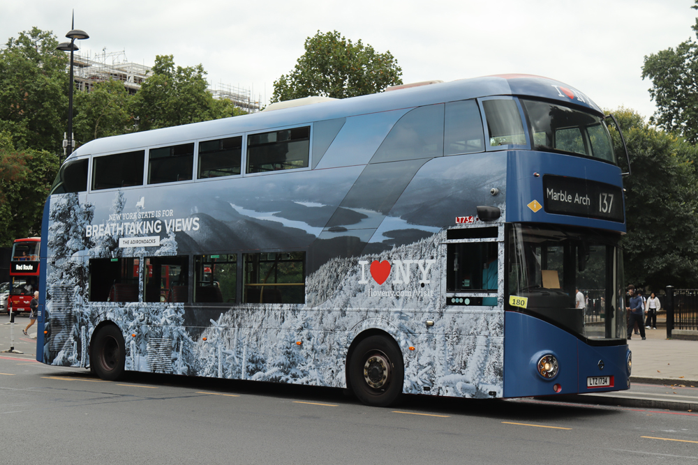 Arriva's LT734 is in this overall wrap promoting the attractions of New York