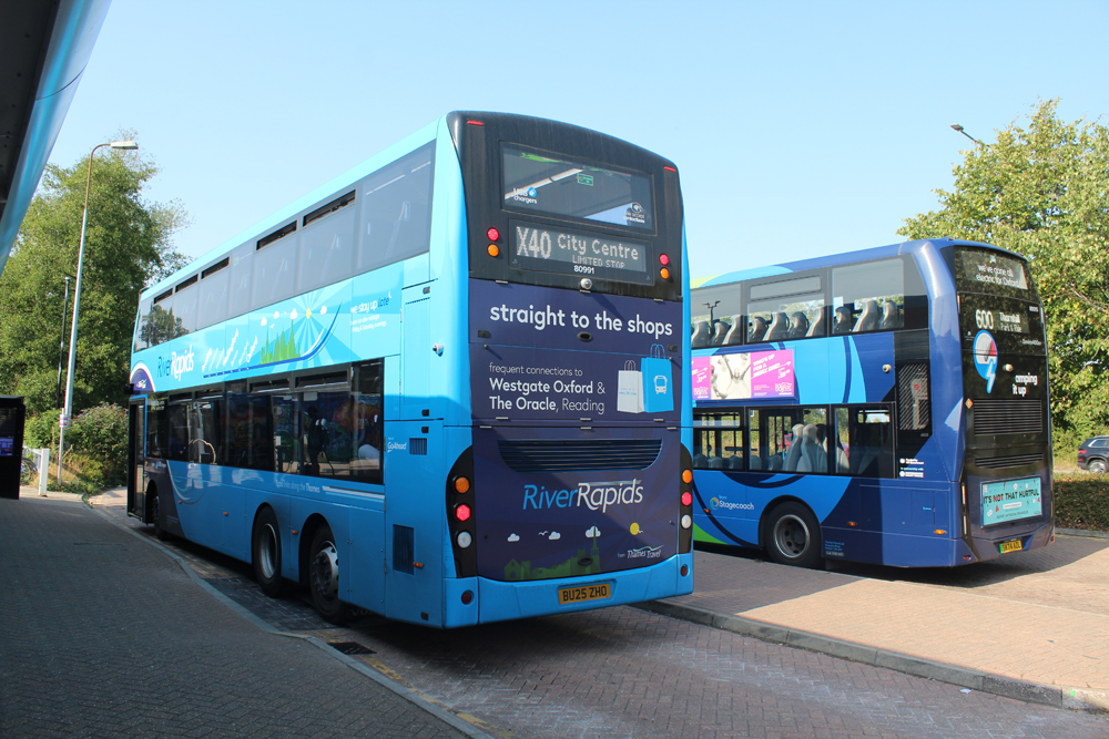The service has been operated by Reading Buses Compressed Natural Gas (CNG) powered buses since day one, offering a low-emission alternative to the huge number of cars running in and out of the town. The buses save 82% of greenhouse gases whilst in operation versus diesel buses.