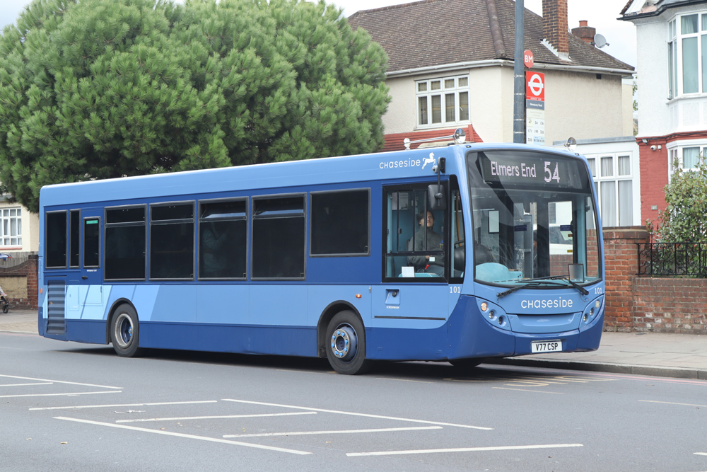 V77CSP started life as ENL43 in the Arriva London fleet and has gained a