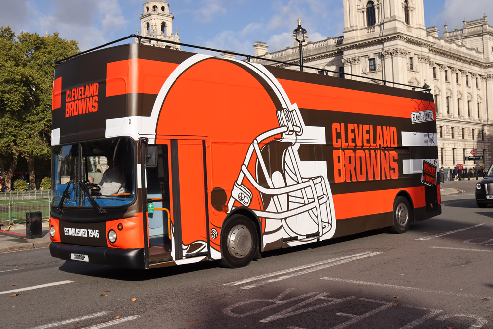 This former Stagecoach London Trident was one of two from The Bus Business to carry the England Lionesses on their victory parade along The Mall in July. It is now promoting a different type of football carrying this wrap for Cleveland Browns, an NFL team who played Minnesota Vikings in a match held at Tottenham's stadium in north London.