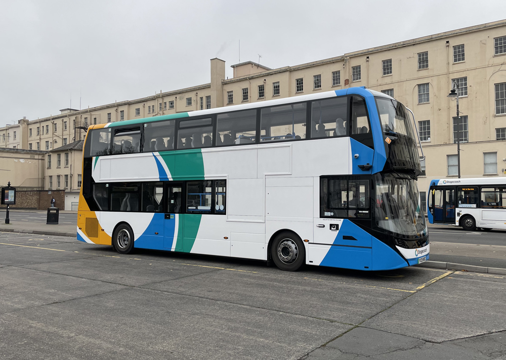 80233, one of the much delayed Cheltenham electric buses, photographed in