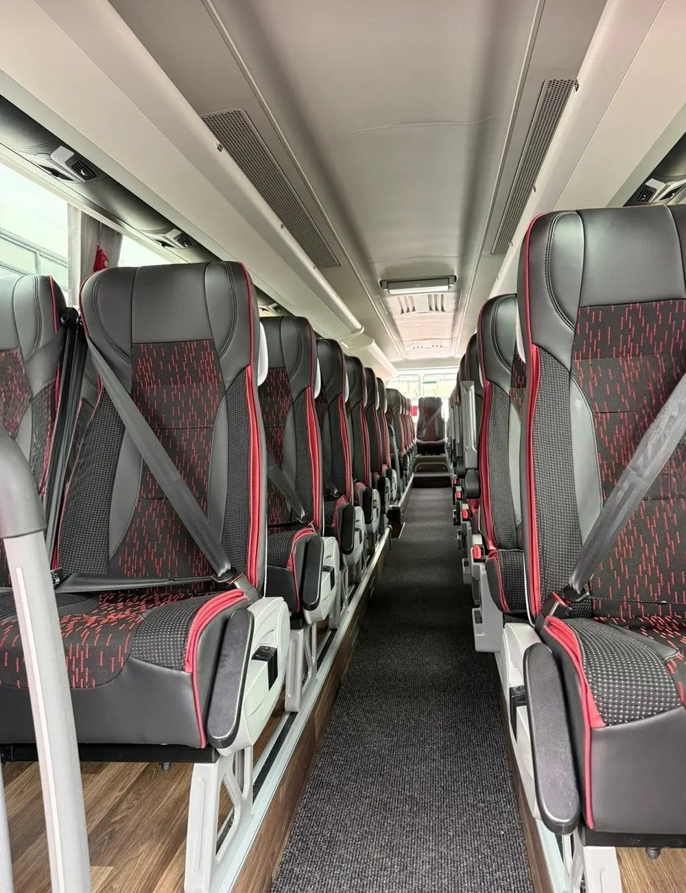 a Mercedes-Benz Tourismo; PJ24 WKV, a Scania/Irizar and