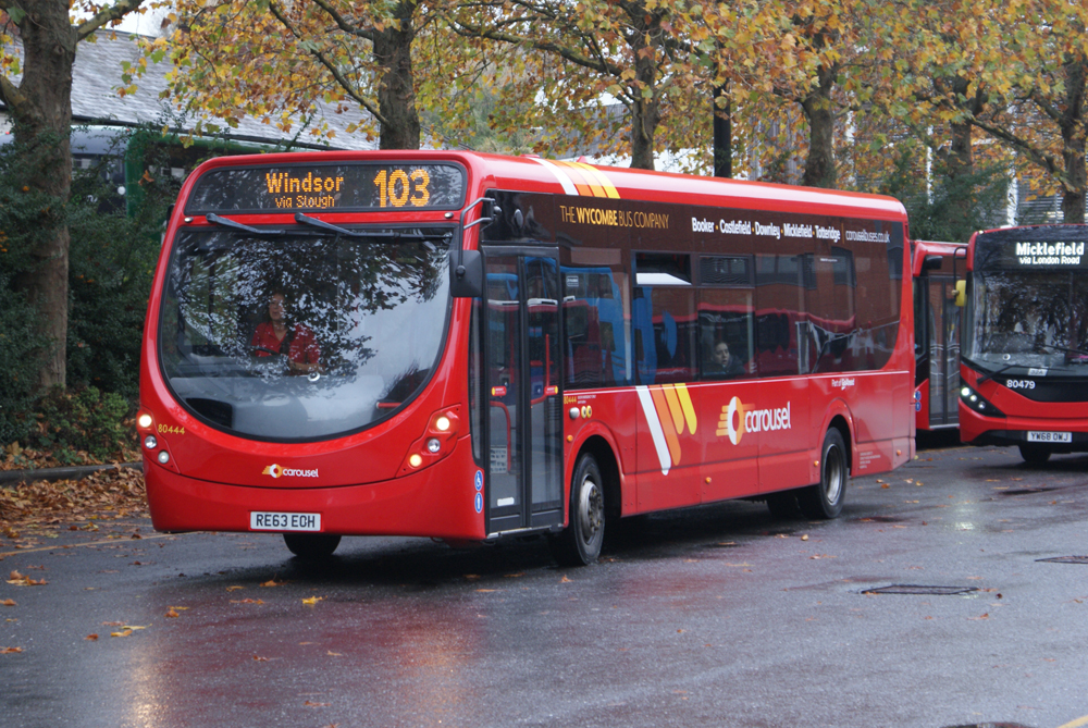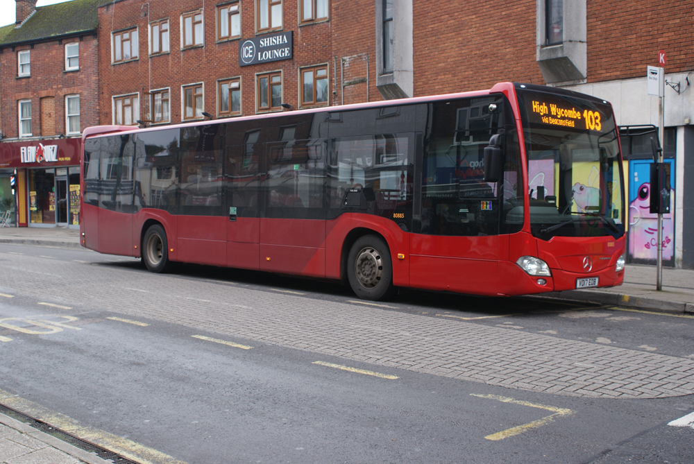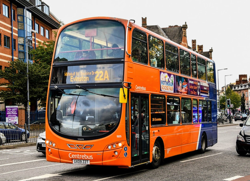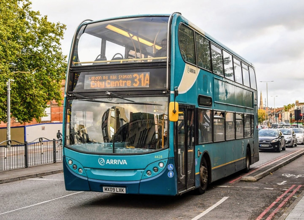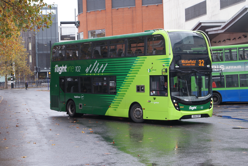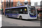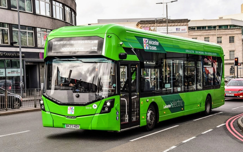 In contrast, a variety of standard liveried buses can be seen on Leicester route