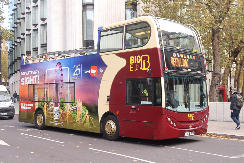 The following day rival Big Bus were advertising MakeMyTrip on this Enviro 400