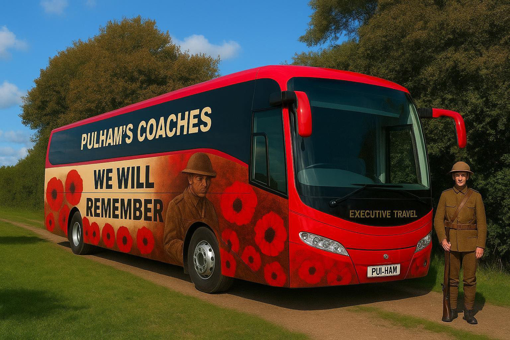 Charles Powell writes on the Sunday "Today, we join the rest of the UK - and other commonwealth countries - in celebrating Remembrance Day - A chance to pay tribute to military personnel who fought for us in conflict. We have a good number of ex-military amongst our colleagues at Pulhams and some of them will be wearing part of their military attire today, if they are working. ‘AI’ did well, with its depiction of a Pulhams coach next to a WW2 soldier."