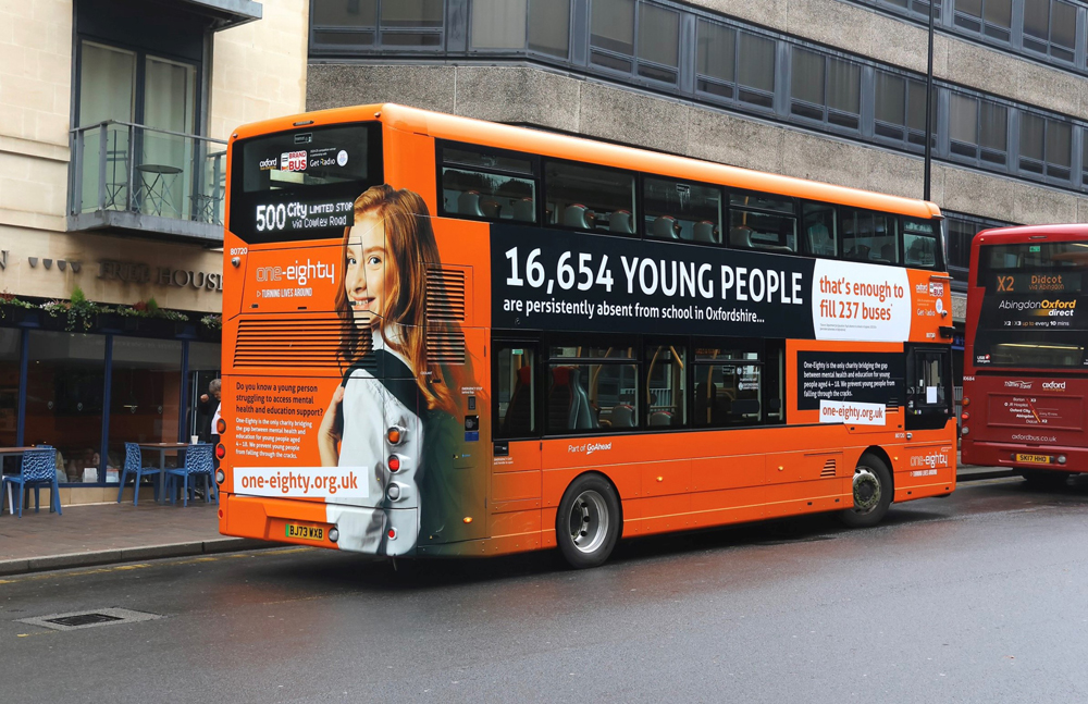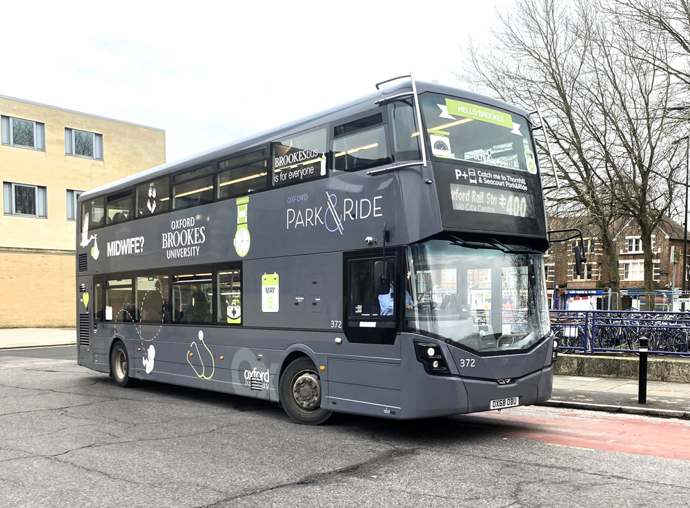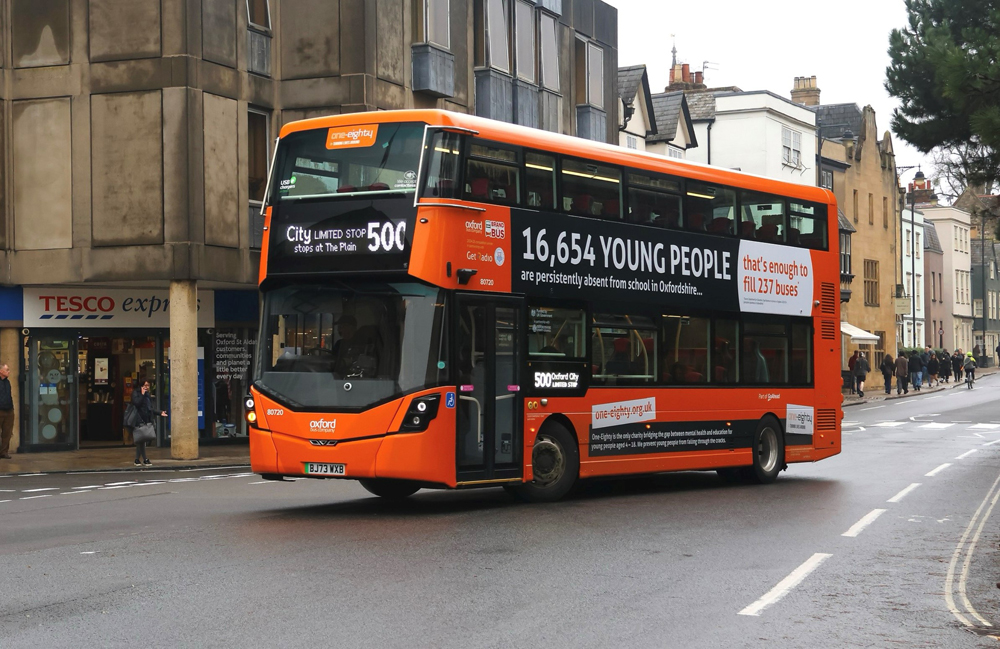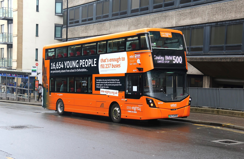 Oxford Bus Company 80720 has had its wrap for Oxford Hospitals Charity replaced