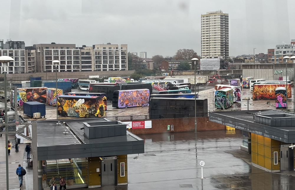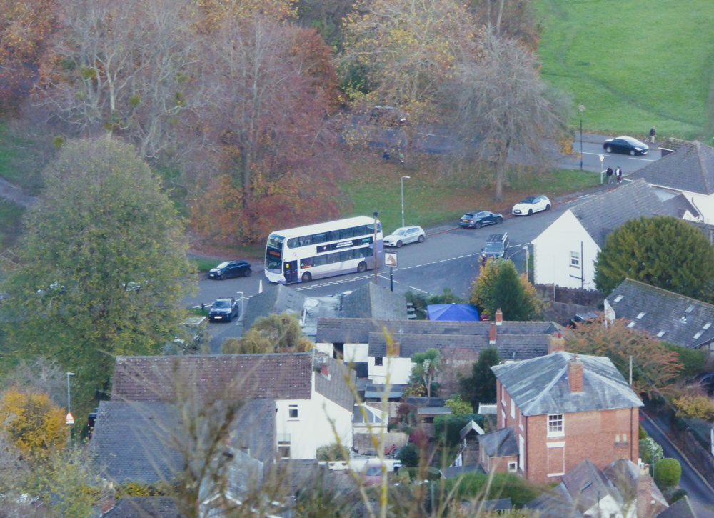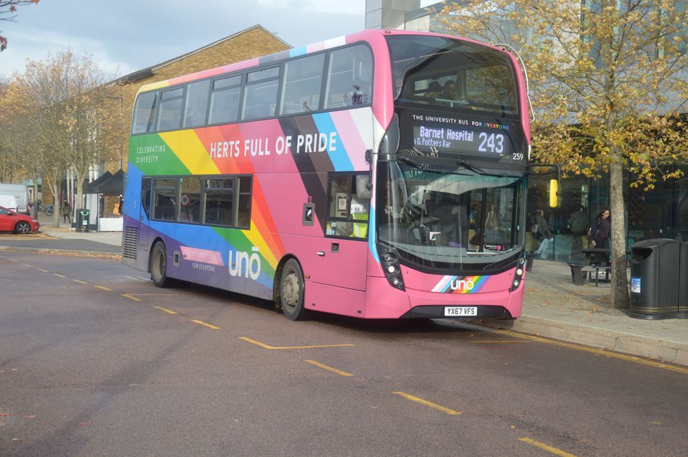 Approaching the stop at Link Top is another Enviro 400 in what appears to be 'Pride Livery' ? If so then this may make identification of this vehicle easier!