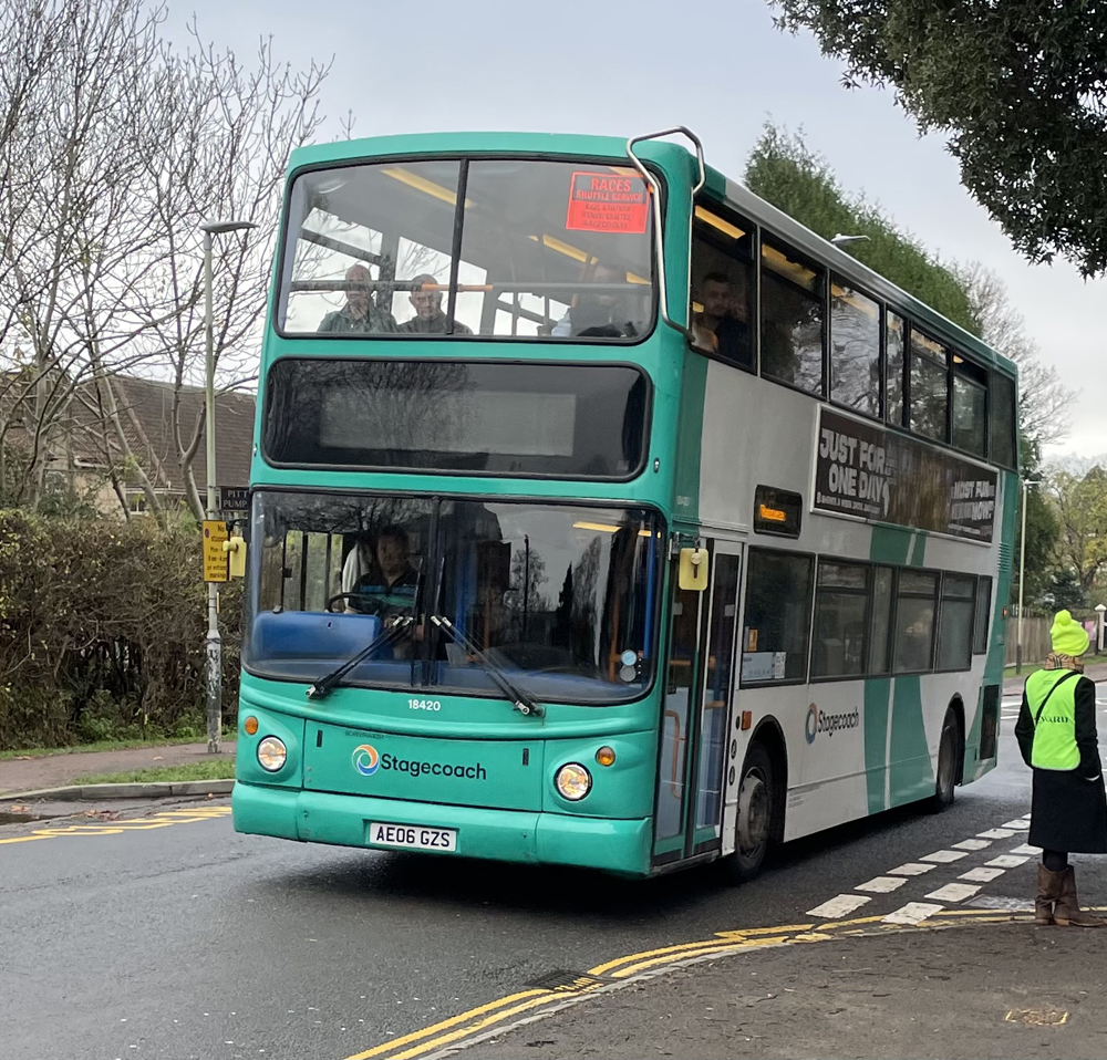 The ex. London Streetdeck HEV's are dribbling back from Thorntons gradually with another one arriving this week (80910 SN18XYV) bringing the total that have been bodily refurbished for use up to eight. They have to all have some mechanical drive train upgrades as they are slow machine, just about maintaining 43mph), so a liability on the A34! London haven't actually released them all either with at least six still in service on the 44. There are also a few of them at Stockwell with damage that is subject to ongoing claims so I would imagine that OBC wont have the full compliment for a few months. I think Thorntons have some more to work on at the minute and I know the ex. LG Citaro's have now gone t Thorntons as well.