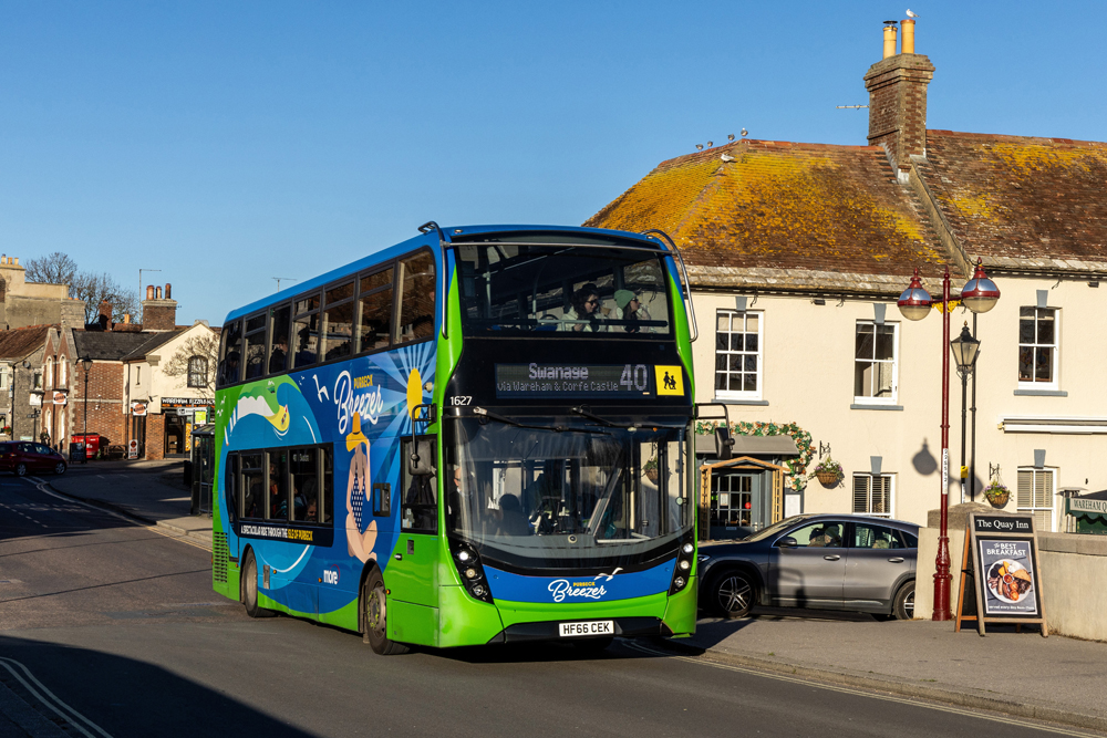 Purbeck Breezer livery, passing through Wareham on 20 November.