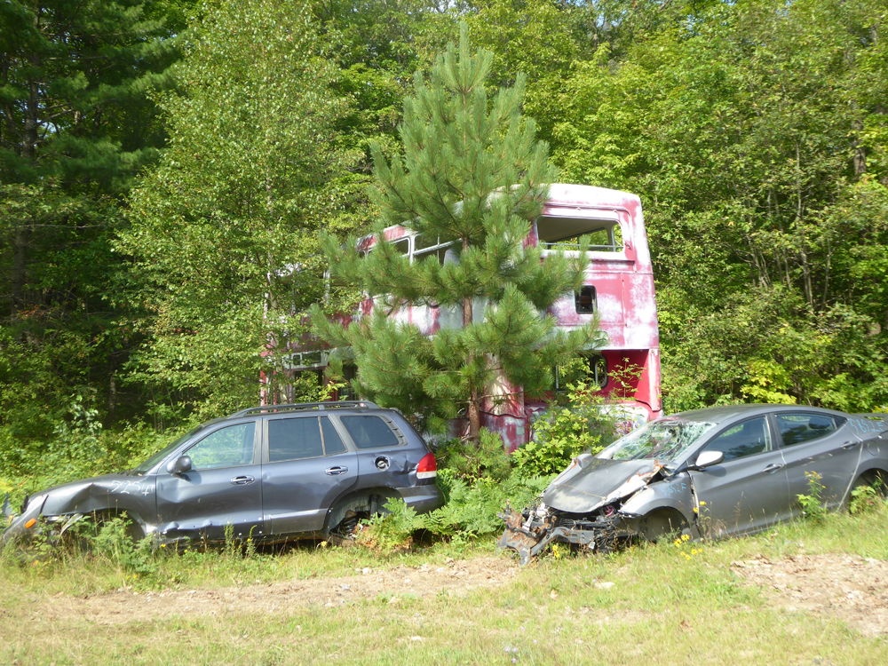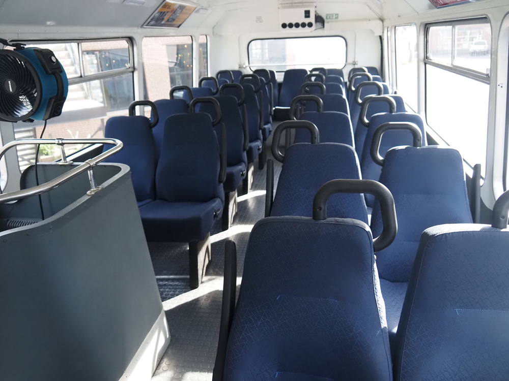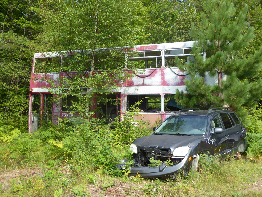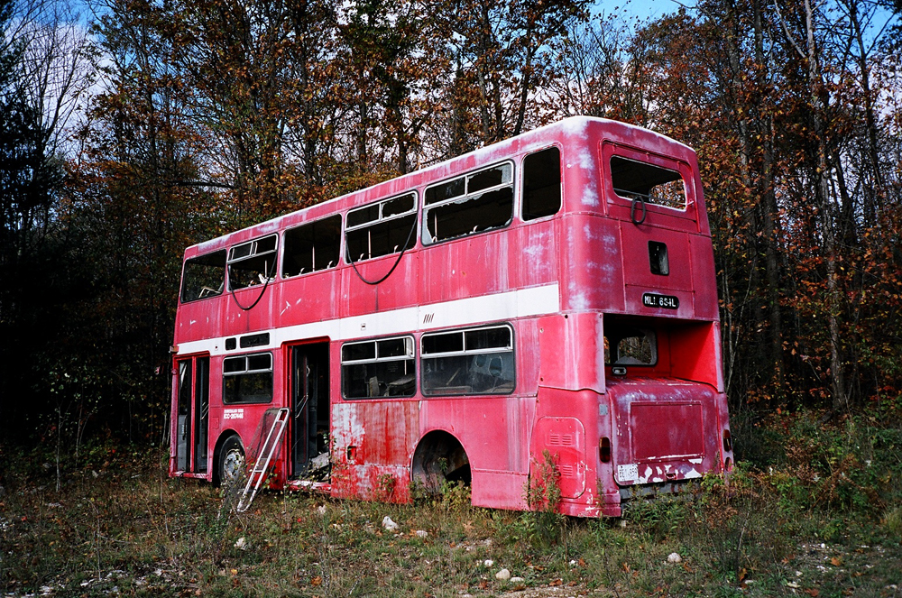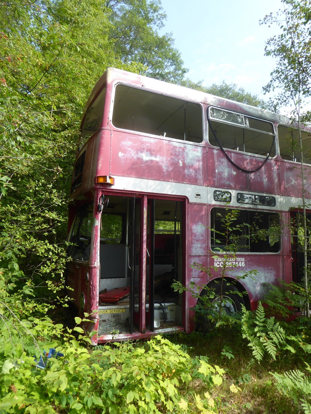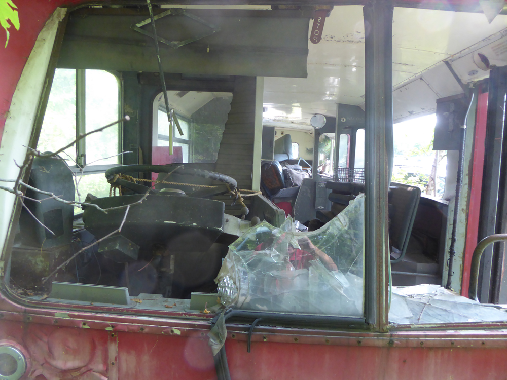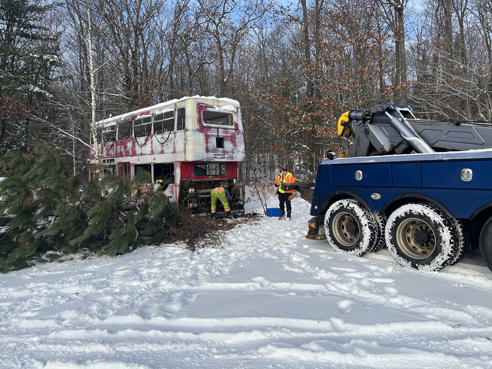 of the bus being dragged out of the scrapyard. Their initials are shown next