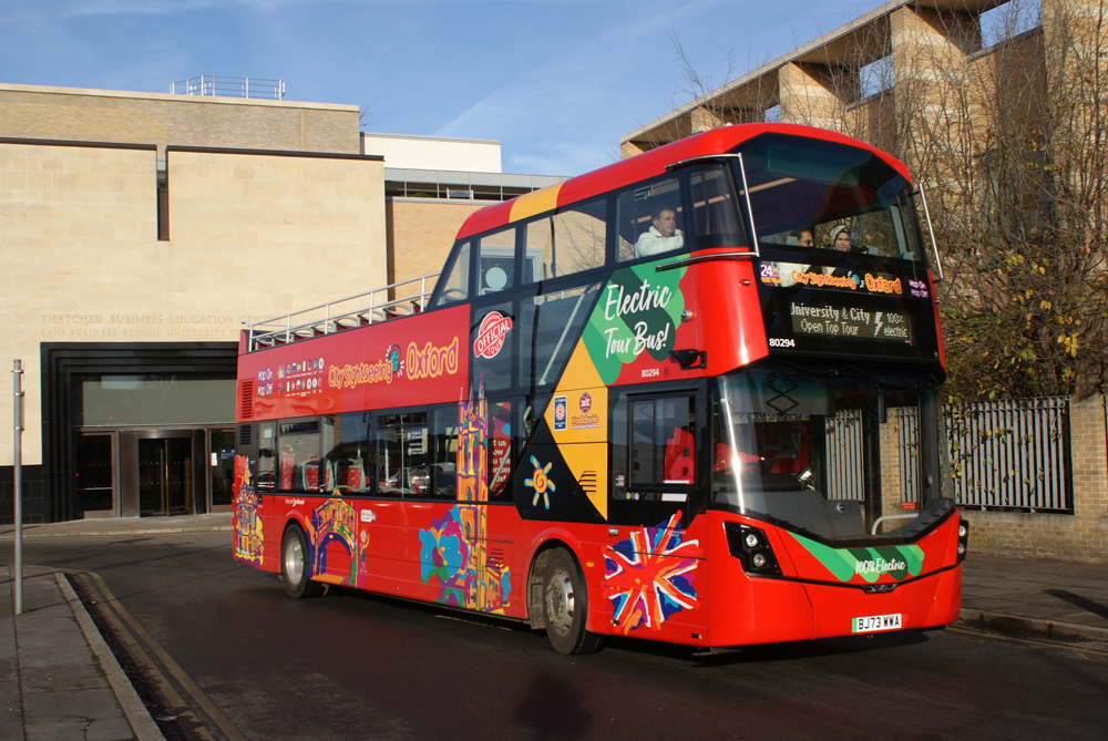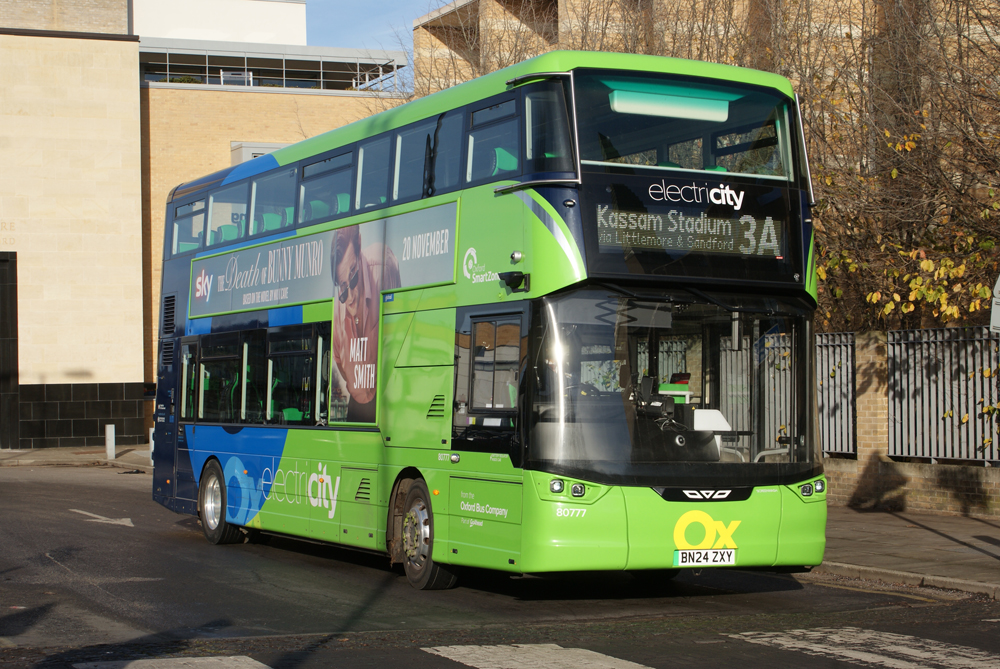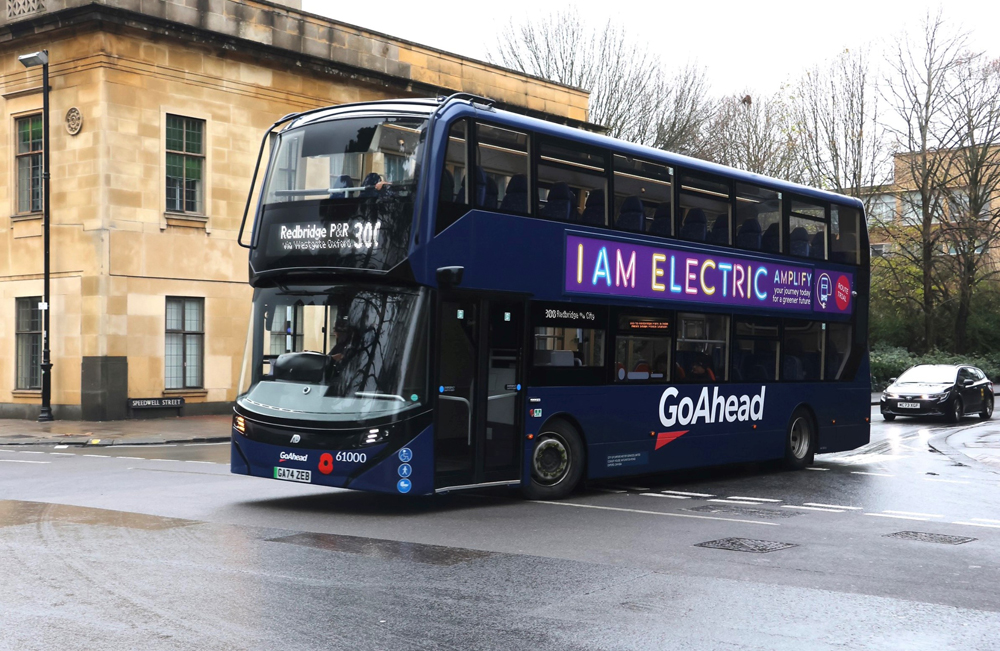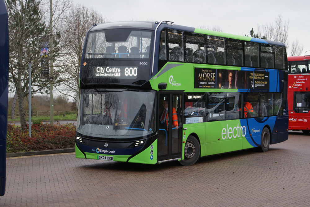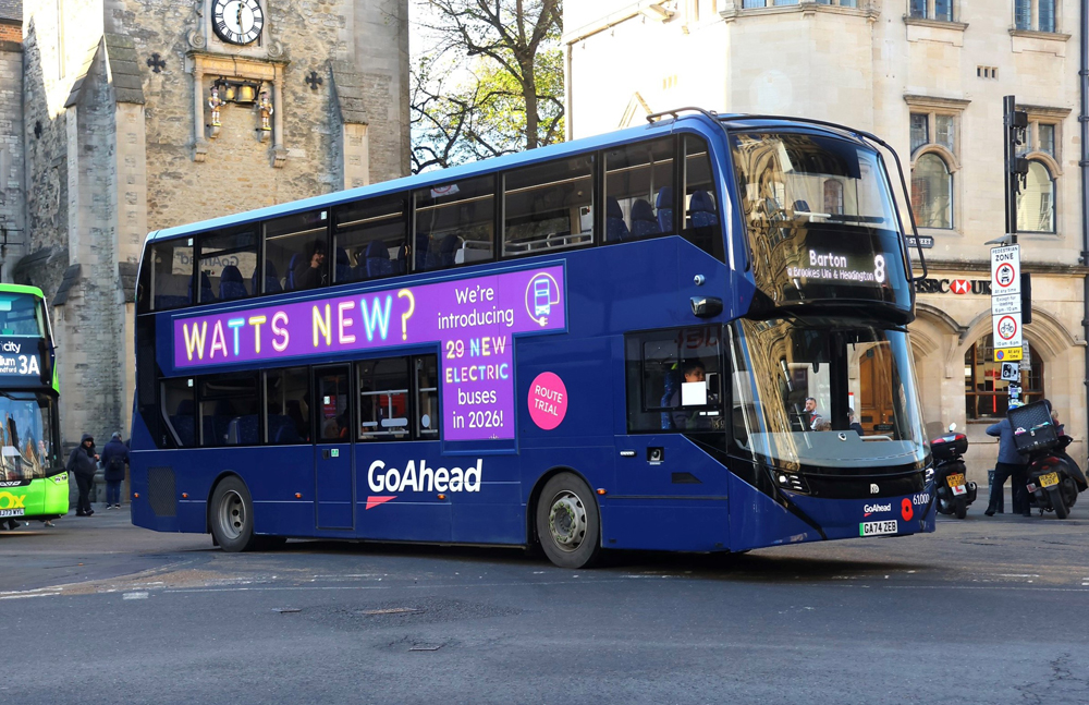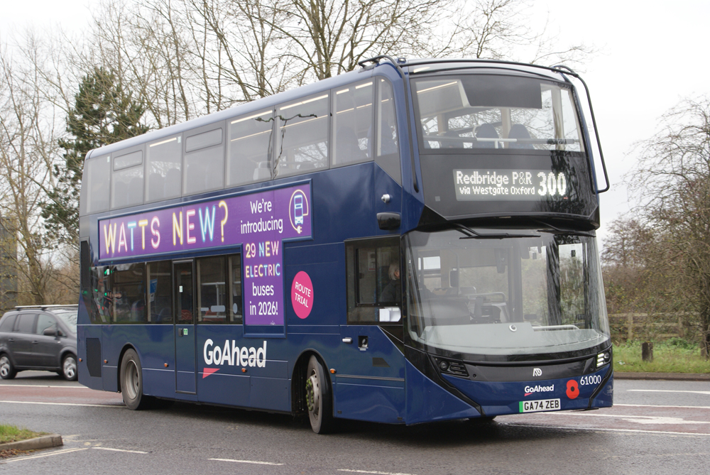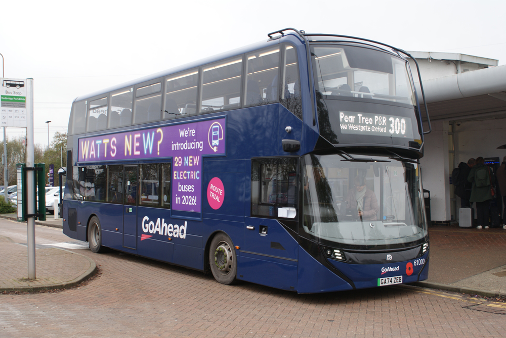 A new class of vehicle for the Oxford Bus Company, ADL Enviro 400EV appear to heading for Oxford in 2026. Here demonstrator allocated fleet number 61000 is seen at Carfax, Oxford City Centre. 25/11/2025.