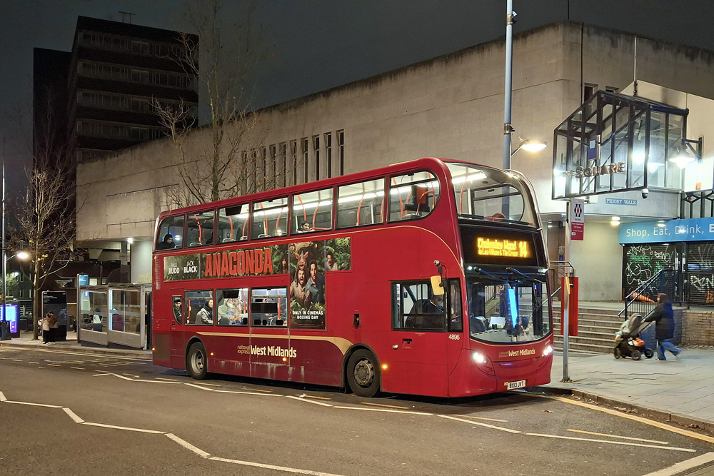 We had a short break in Birmingham between Christmas and New Year, where I took some "after dark" photos of Buses and Trams, which may be of interest for the OCBP. See below: