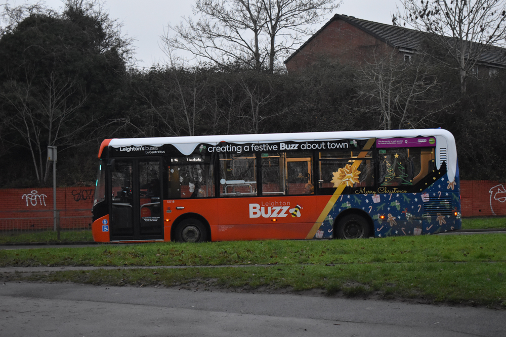 Cheery Festive vinyl Christmas liveried Centrebus Enviro 5018 waiting at