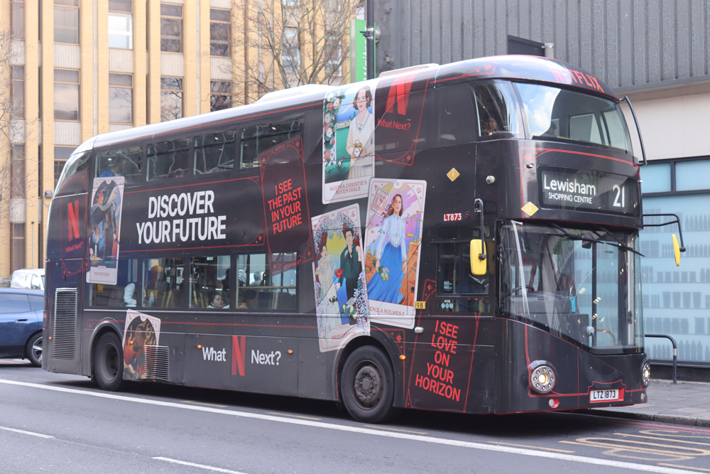 Classmate LT873 pauses outside Highbury and Islington station on the same day clad in this wrap for Netflix.