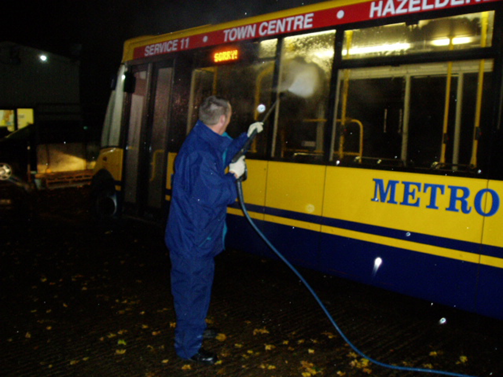 member of driving staff remained behind after his late shift to clean the buses