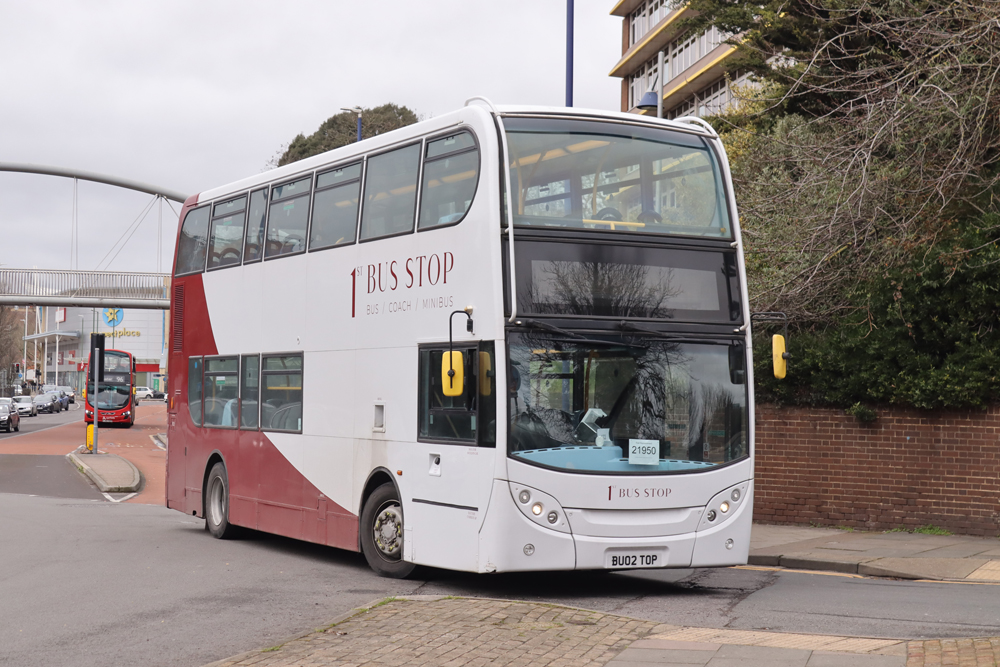 st Bus Stop is a small independent operator in Dartford which until recently concentrated on school contracts and rail replacement. Most of their fleet is sourced from London operators and carries this white and maroon livery. Several have been reregistered with cherished plates including BU02TOP which was TE981 when new to Metroline.