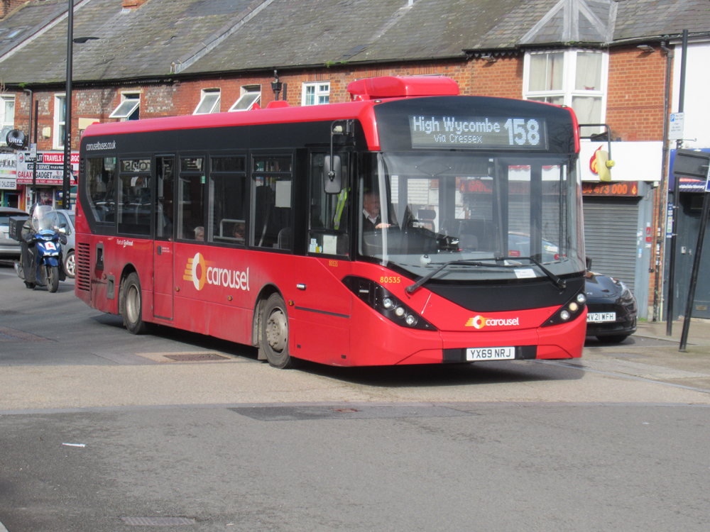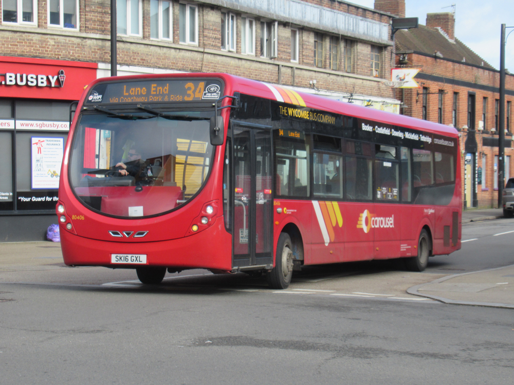 Carousel's 80216 is behind on route 1A (which follows a lot of
