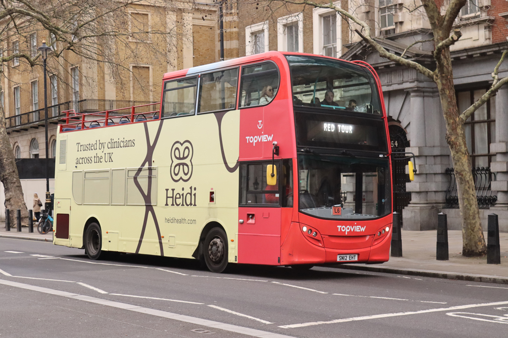 Later the same morning this Top View Enviro 400 was heading along Whitehall wearing this promotion for Heidi.