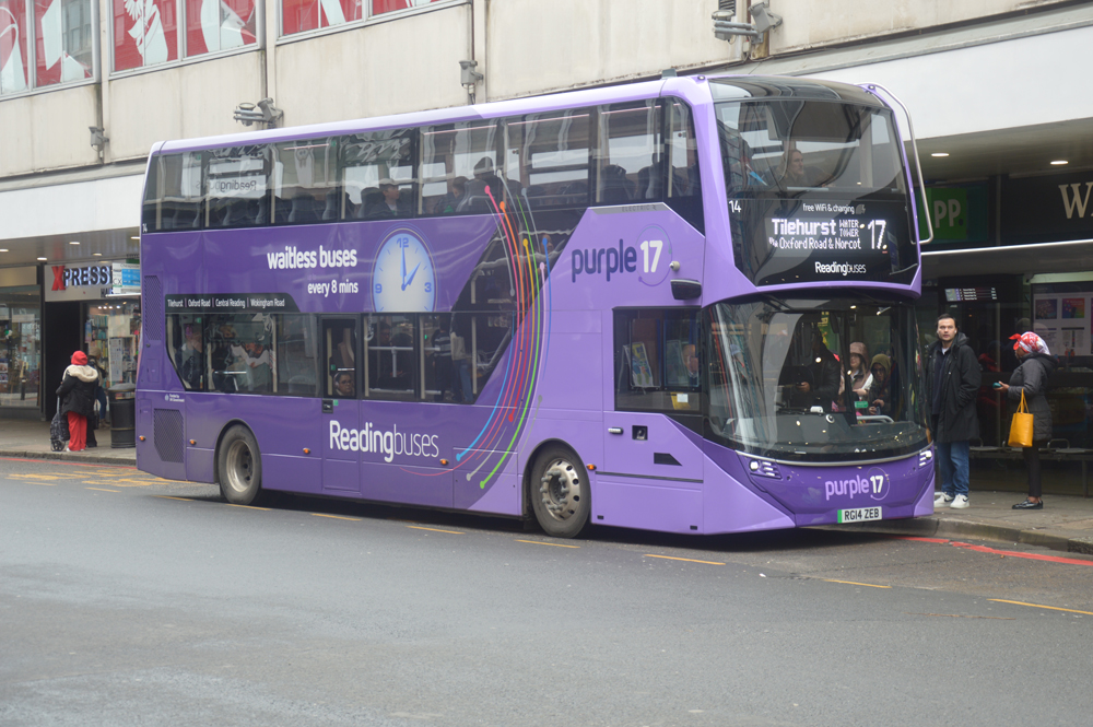 buses in Reading are painted for routes 17 or 21, but a few have special