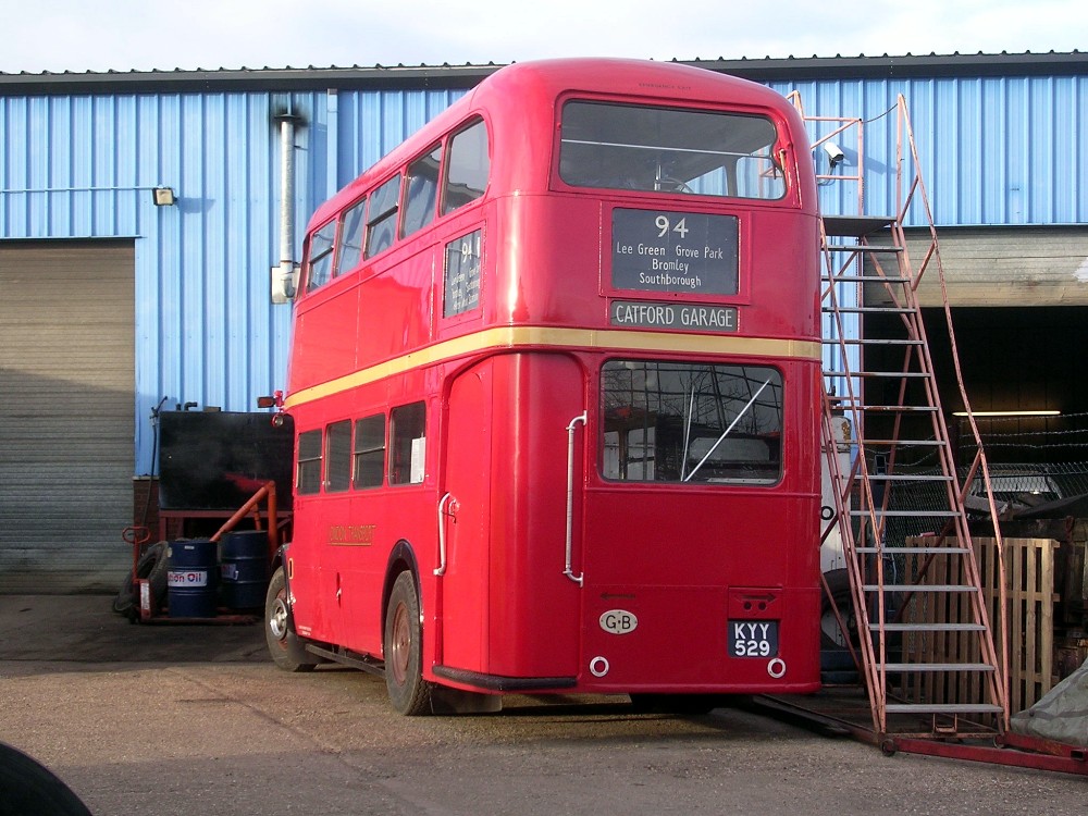 Steve writes "A couple of interesting London Transport types at the Ward Jones premises this week (17th March) were KGJ 621D, which carried the LT fleet number RMA1 although was originally BEA21, receiving some major attention and also present was RT1702 (KYY 529) the last of the 4 Festival of Britain buses, which toured Europe promoting the event in 1950 still carrying a GB sticker on the rear. Also noted was Bristol VRT VDV 123S, originally with Western National, and now privately preserved."