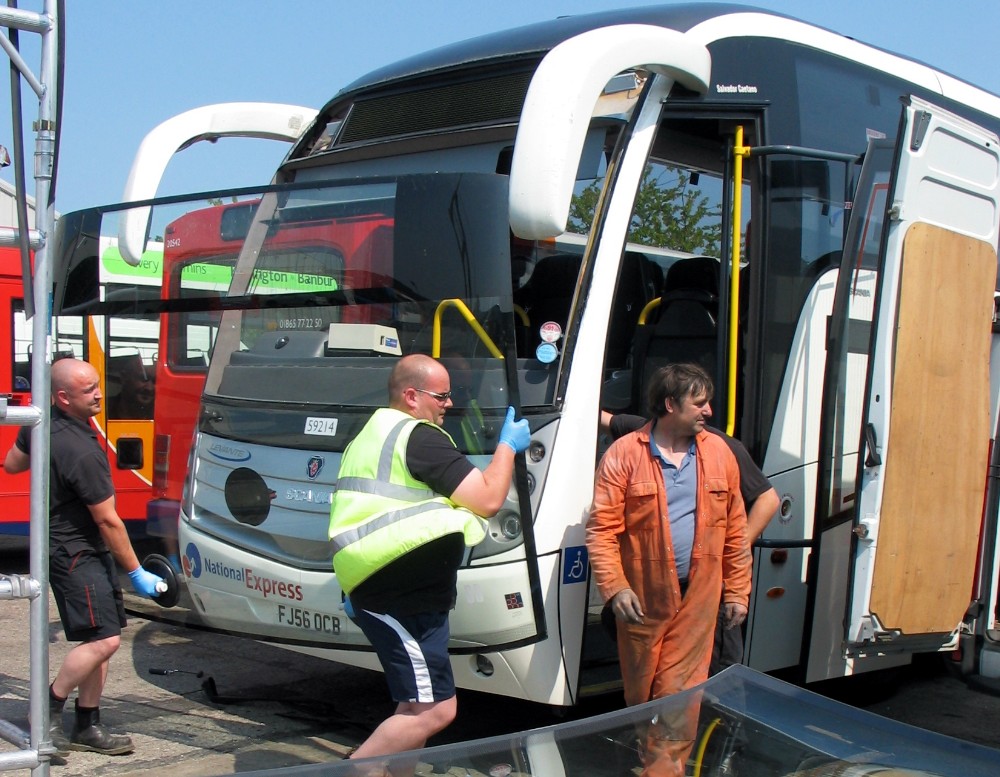 Imagine my surprise ...... !!!!! - Friday 27th April dawned fine and sunny. I had worked the 04:30 departure from Oxford to Stansted on National Express 737 and was on my way back at 09:15 from Stansted with my first stop scheduled for the University of Hertfordshire at Hatfield at 10:00. As I turned of the A1001 to gain entry to the bus station I was surprised to see my good friends Chris Maxfield and Ben Morroll armed with their cameras snapping everything in sight. This included me and my trusty steed Scania 59214 which features heavily in this edition of the News Page.