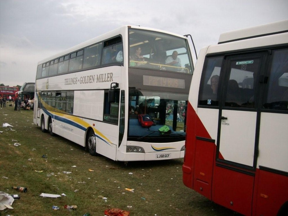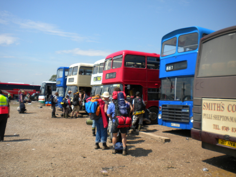 Wednesday was rather chaotic with an accident on the M4 and heavier than predicted traffic causing long queues. I was caught in a queue for nearly 7 hours to cover a distance of 13 miles. Some of the Go South Coast buses on the Bristol shuttle were taking 9-10 hours to cover the journey. This caused significant delays in the shuttle service and as a result lengthy queues of people formed at Castle Cary station waiting for the limited number of buses to transport them to the Pilton site. Reinforcements were called in from other operators and included two open topped Ayats Volvo’s from the Bath Bus Company City Sightseeing fleet which did a round trip on the shuttle service with a full load of passengers and luggage. When I eventually got to Castle Cary, I soon joined in the efforts to shift people down to Pilton with the queues not dying down until nearly 10pm.