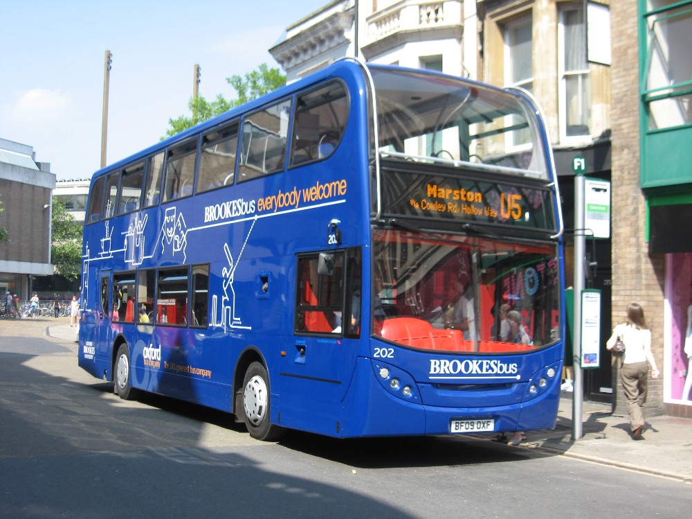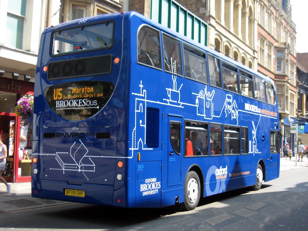 In any new service not everything goes according to plan and after the first day capacity was needed on the U5 due to the high numbers of foreign language students. This saw the transfer of the Scanias to the U5 and the resultant use of Volvo B10Bs on the U1. These buses, nearing the end of their lives, have been tided up and given an interim livery and branding for the Brookes services pending arrival of more Scanias. I am told that one ex North East Tridents (903-909 batch) was seen heading towards Wheatley on the first day but this is unconfirmed.