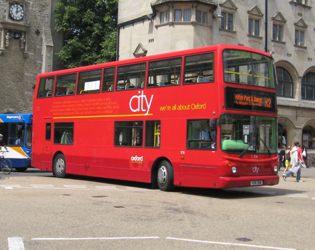 On that Trident theme, red 106, looking very smart, was on the X2 to Didcot and is pictured at Carfax