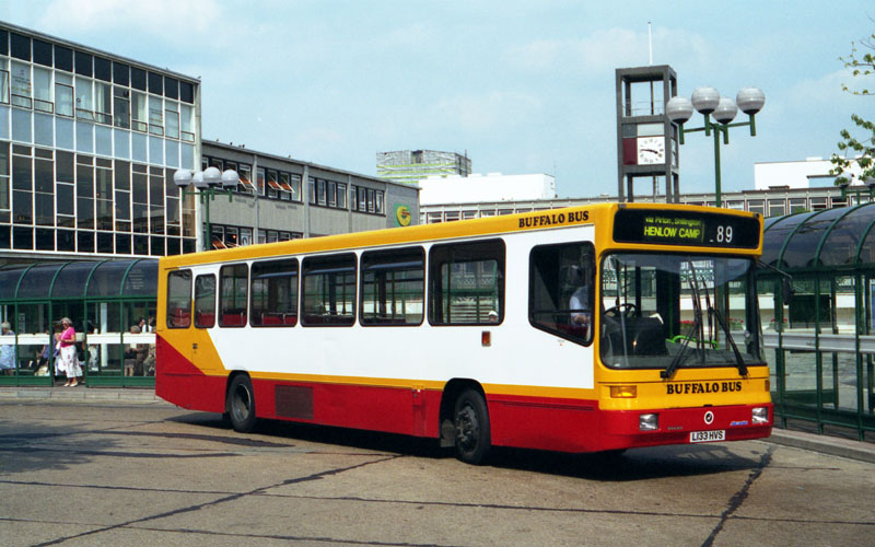 Further to last week's picture of 3089 at Luton Airport, Mike Penn writes to say "With regard to your photograph of Arriva L133 HVS in this week's page it's not the first time it has operated into Luton but it could be the first time it has worked the 321, having moved to Watford recently. For the record it was new to Buffalo Travel, having been purchased to operate Herts County Council route 89 from Hitchin to Henlow Camp. Following Luton & District's takeover of much of Buffalo Travel's stage work in May 1995 L133 HVS became Luton & District number 350, later becoming 3089, and was allocated to Hitchin, where it has remained until recently, now of course with Arriva The Shires. As such it sometimes worked into Luton on services 100 and 101. It was, and is, the only Alexander Strider bodied bus in the fleet. The Hitchin to Henlow Camp route was once Birch Bros. route 209, becoming United Counties route 89 in 1968. Since then it has been run by a number of different operators, including Seamarks and Dunn-Line and is now run by Centrebus. The attached photo is of L133 HVS with Buffalo Travel taken in Stevenage in July 1994."