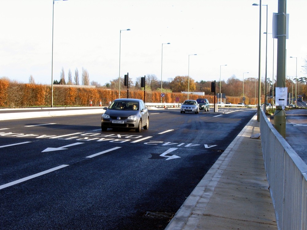 The first picture shows the bus lane ending from Thornhill. The second the hamburger through road to the western by-pass. The third picture shows the road in from the eastern by-pass and finally looking towards Barton from London Road, Headington.