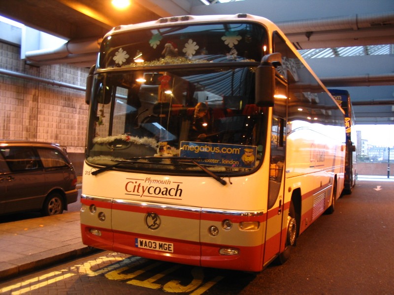 Gavin Francis writes "...was in Bullied Way just before Christmas and the place was packed. Watched Megabus trying to cram a full load of people and their luggage onto an old Hong Kong Olympian. For the first time I saw Megabus had hired another operator to do a Megabus service, I have never seen or heard of this before and have attached a picture."