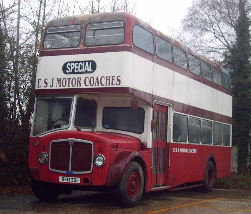 Glyn Williams wrote on the South West Bus Group site "Noticed an AEC decker in Falmouth yesterday - I know nothing about these things - looks like a Regent to me but if its ex City of Oxford I guess it could be a Bridgemaster or something. Last legals showed ESJ at Saltash who have had a number of vehicles for sale on Ebay including a Wallace Arnold Leopard that has been trashed."