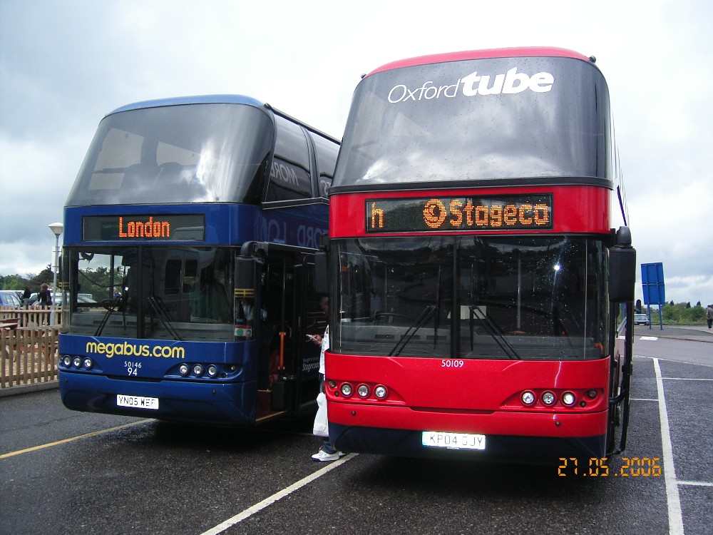 at Leicester Forest East in company with a Megabus Neoplan. Photo by Harvey