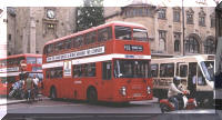 ........and just a few yards north, but some nine years later, a busy scene in Carfax in 1988, with ex-Northern General 3298 Atlantean MPT 298P, f/n 968, in centre stage.