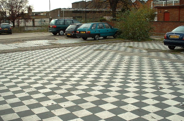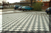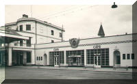 Brian says "Attached picture of the remains of Cheltenham Coach Station, taken this week, together with a view of the original site, believed taken around 1951. Shows the cafe and concourse area which adjoined the "Black & White Motorways" Coach Station in Cheltenham, with the canopy which covered the coach departure bays just showing at the left of the picture. The floor tiling was present internally throughout the building, sadly now demolished, and the site is now a car park, but it does see the occasional coach parked there. I'm still trying to get a picture of a coach actually parked on the tiles ! N.B. The "Cafe" picture should be acknowledged to 'The Black & White Motorways' website. A good site for company history etc. - COMS gets a mention.