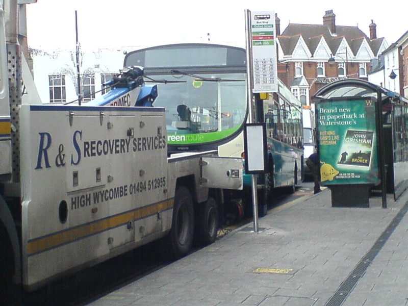 Frazer Peddle was in Wycombe last week and took a few pictures one of which I publish below. It's always sad to see a newish bus on tow.