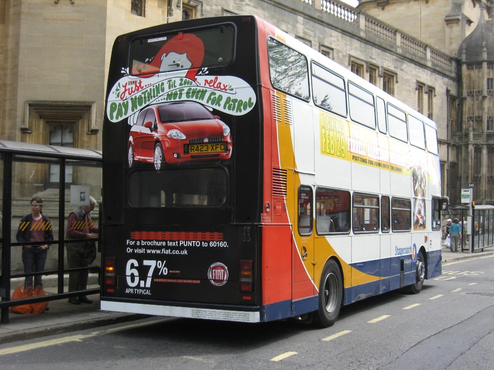 18394 is one of three vehicles which carry supplementary branding for the Bicester Duo ticket which was introduced during 2007. The ticket allows two people to travel from Bicester to Oxford for the price of one.