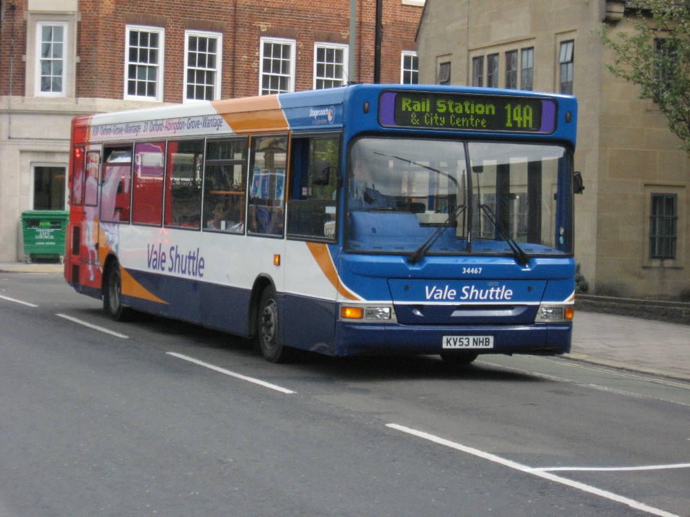 Here Dart 34467 with Vale branding is seen on a route 14 working.