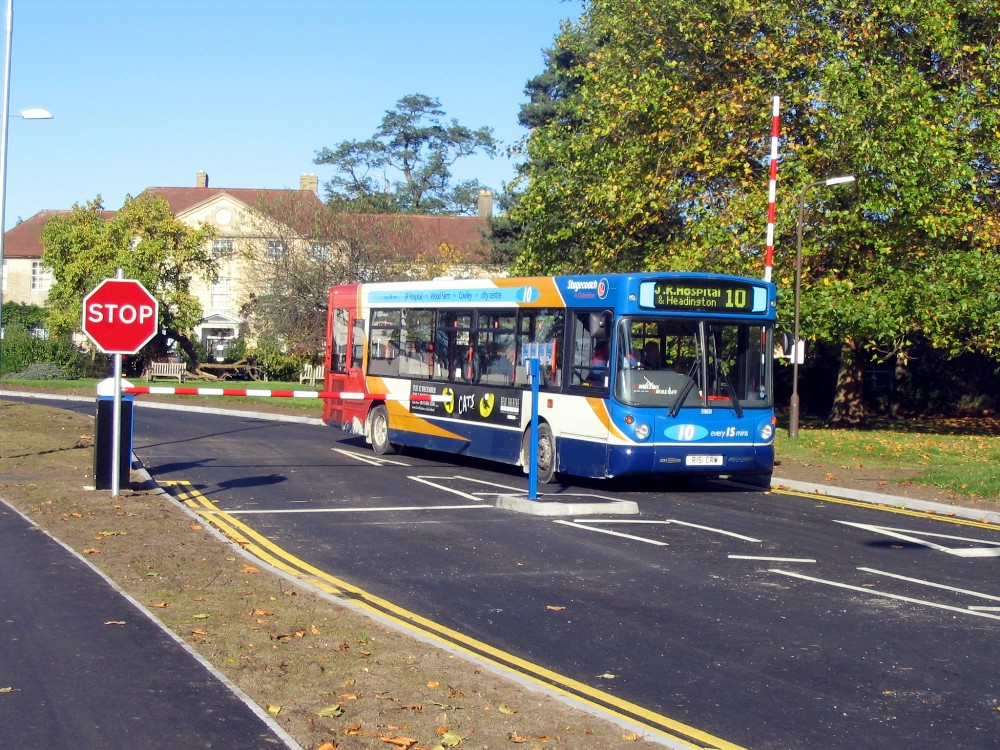 This last week saw the opening of the "bus road" from Osler Road, Headington to the John Racliffe Hospital, reducing journey times on route 10 by quite a significant amount. As one can see from the Stagecoach map reproduced below the new route avoids Headley Way which due to the often high levels of traffic on this and Headington Road, can cause quite some delays to the service as it was before the new route.