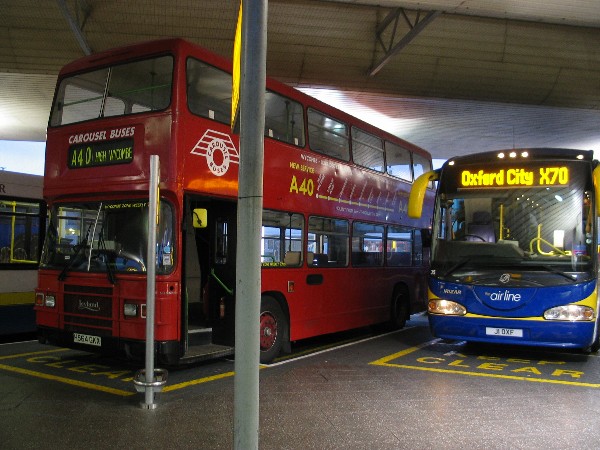 alongside an Airline Scania Irizar, nr 35, bound for Oxford.