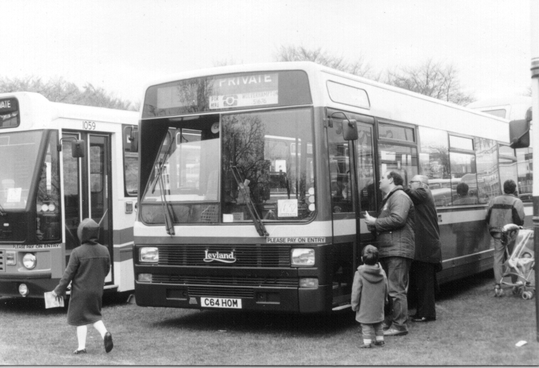 That same bus 19 years ago - West Midlands PTE 1064 (C64 HOM) attracts a lot of attention at the Sandwell Rally in May 1986, just a two months after delivery. Alongside is 1059 (C59 HOM), one of six Volvo Citybus/Alexander used on trials in Wolverhampton against the six Lynxes. Of course, the Lynx was favoured and WMPTE and WMT bought 250 more (1067-1316) in 1988-1990. 1061-1066 went quickly to Lea Hall in Birmingham and worked here for the rest of the WMT and TWM lives.