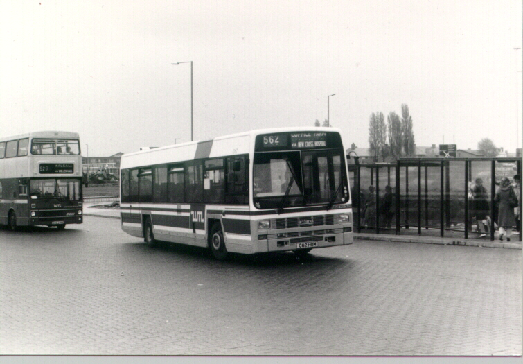 1062 (C62HOM) of the same batch had this experimental blue and white livery when new, seen in Wolverhampton in May 1986.