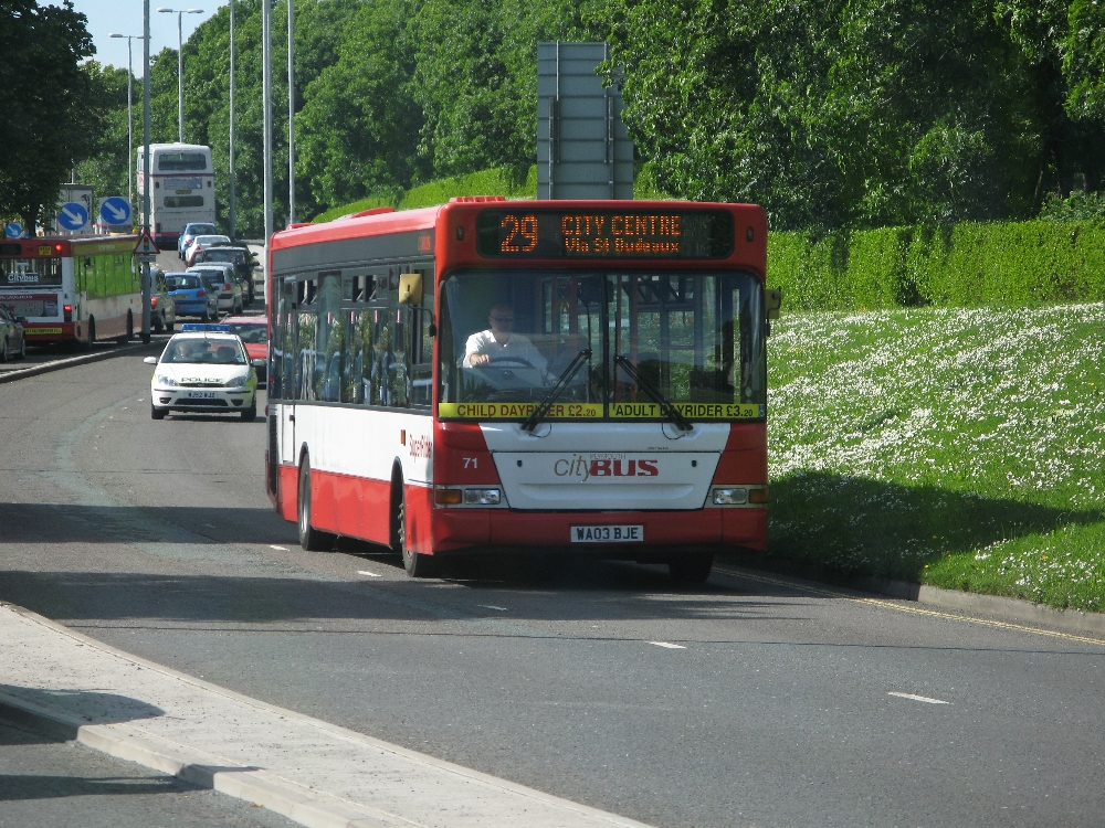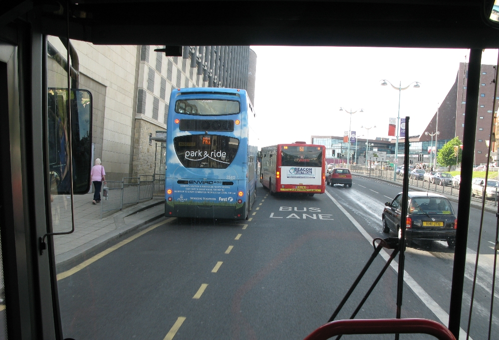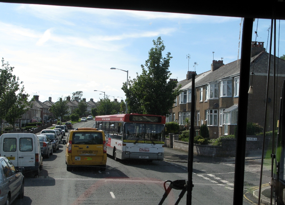 Two of the local Plymouth buses, one First and one Citybus, we passed on our