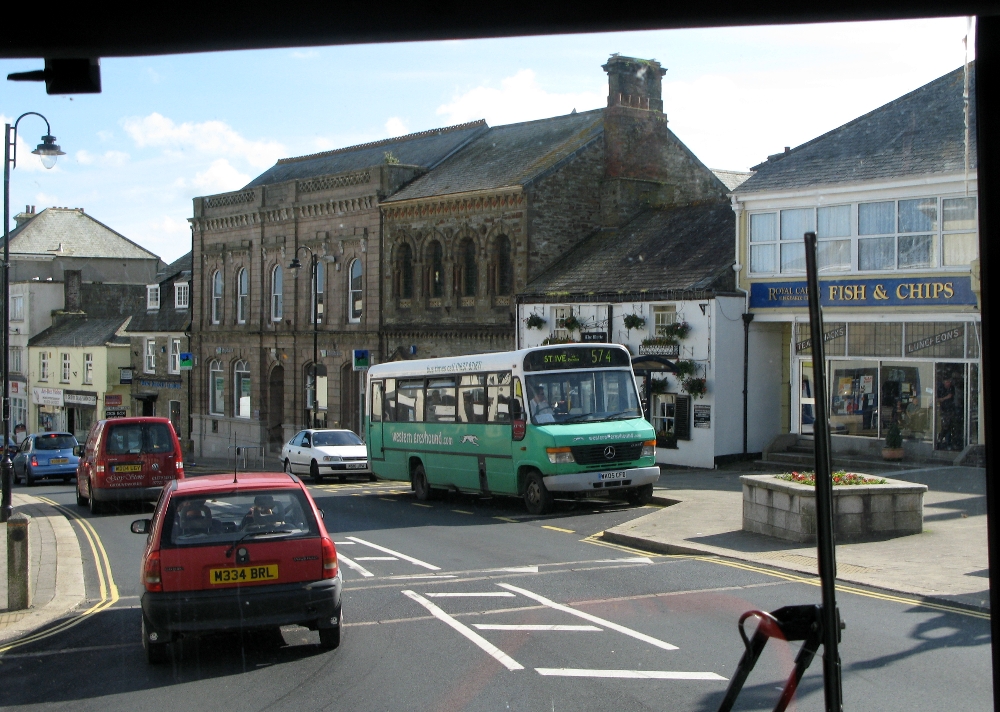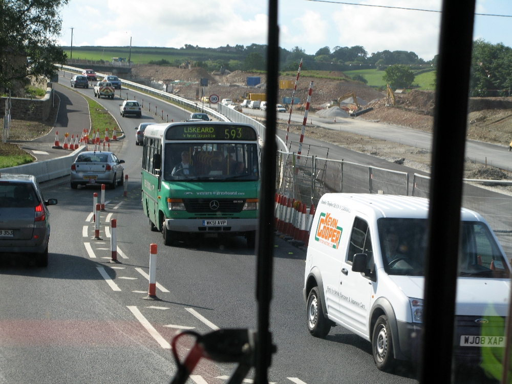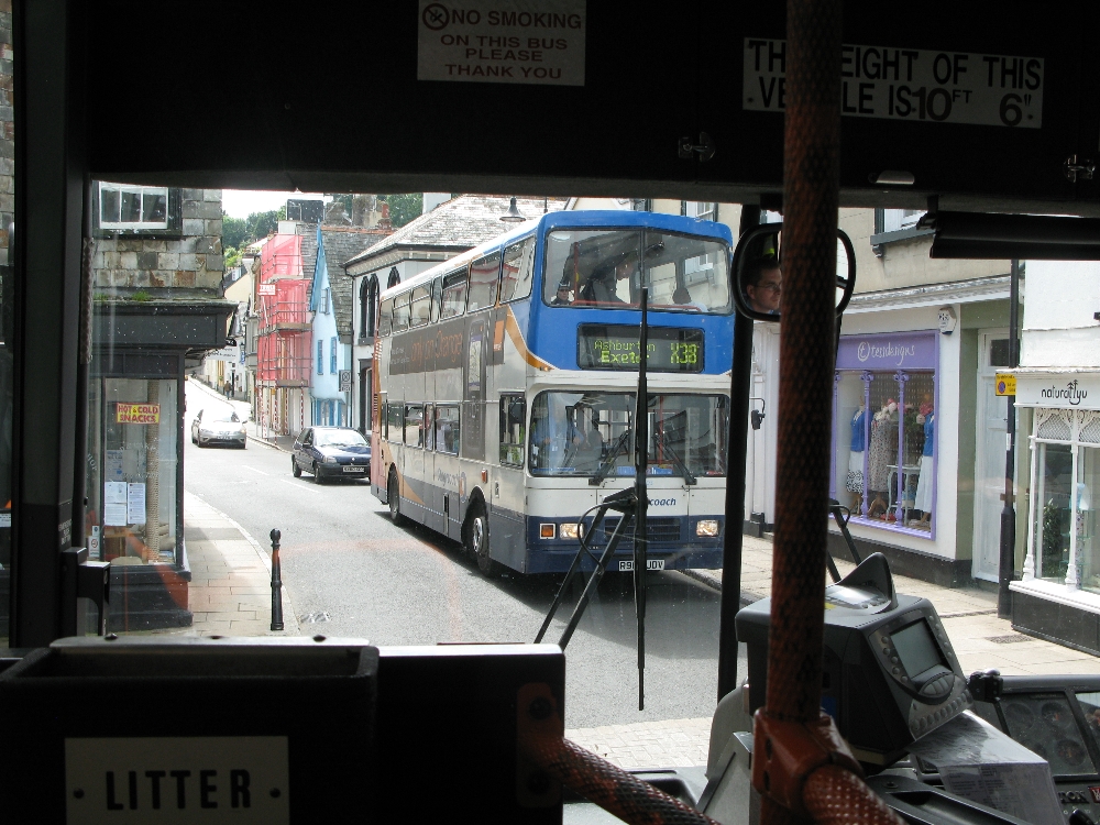 We soon leave Saltash and Plymouth behind us and are at speed on the A38 heading for Liskeard. At one point we pass the 592 heading for the same point and I can't help smiling down on the hard working Vario with quite a goodly load on board. Mark happened to mention that one could in fact use the 504 between Plymouth and Penzance on a concession pass and I suddenly felt at peace with the world. I had not broken my pledge on what services to use. The coach is quite full and can have as many as twenty stops between Plymouth and Penzance. However our first stop is Liskeard.