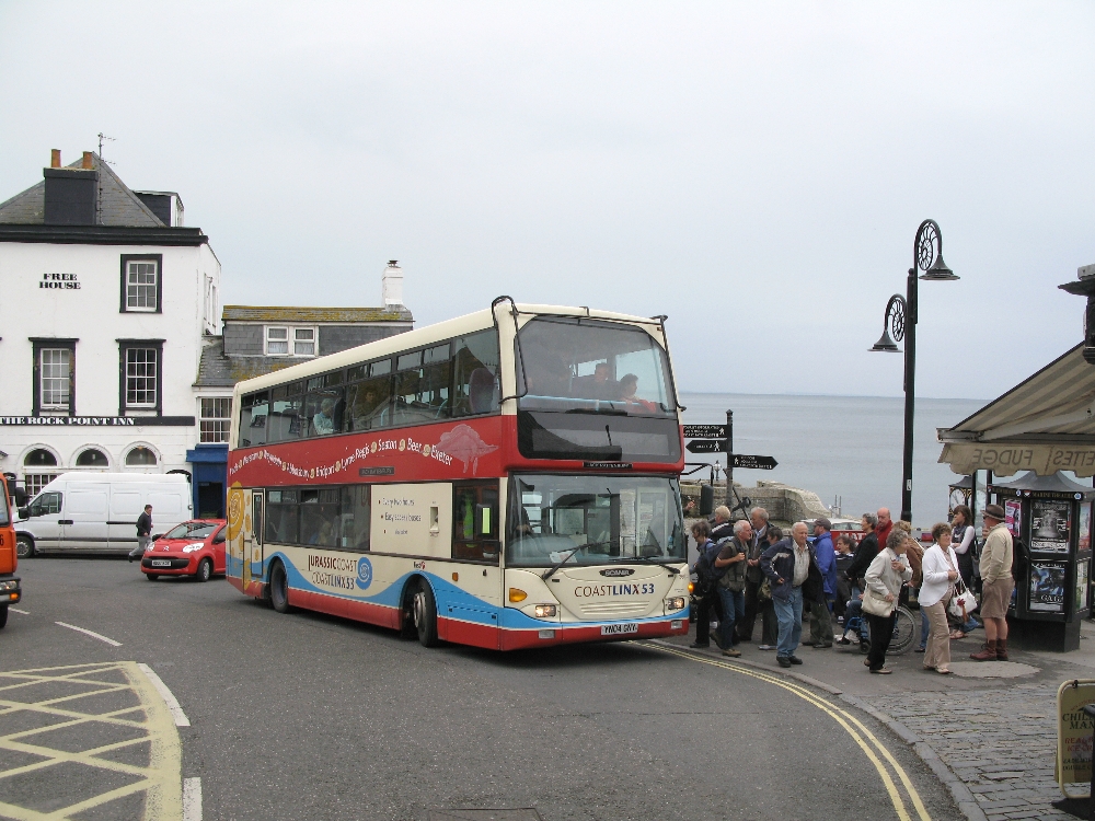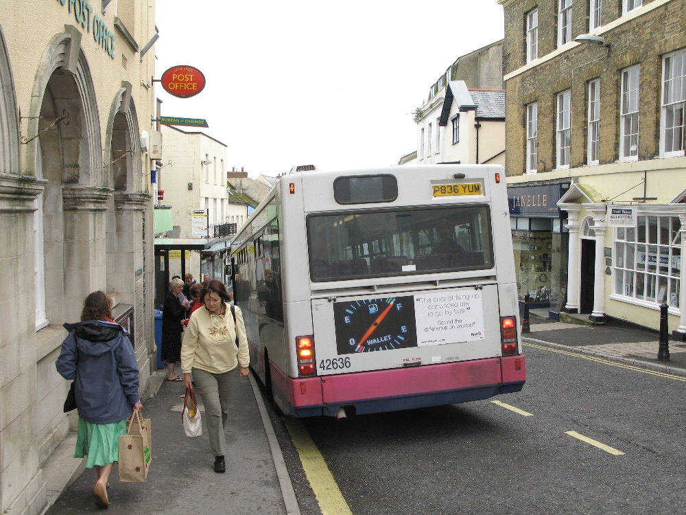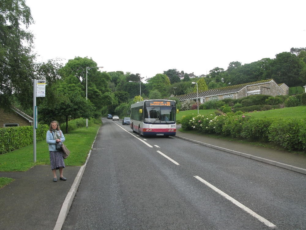 I had thought that the 31 would come past the hotel, since I had been dropped the night before outside the door and so walked o the main A3052 and the nearest bus stop. However the 31 did not stop here and I had to walk down to town, soon realising that I had less time to catch the 31 bus as a result. Indeed when I arrived, somewhat breathless, in Broad Street the 31 was already on the stop loading. I had hoped for one of the Volvo B10BLEs with Wright Renown bodies, very similar except for the centre door, to the Oxford Bus 8xx series but this was not be and another Dart was to be my transport to Bridport.