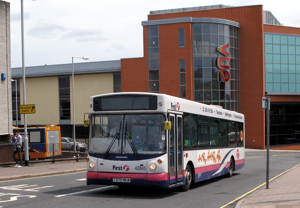 Service 31 Lyme Regis to Bridport operated by First Hampshire and Dorset - Dennis Dart SLF/Plaxton Pointer N37F 42636 P836YUM new 1997