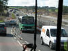 Our driver is from Camborne depot and has already joined the coach at Taunton services. He will now take the coach through to Penzance, leaving the London originating driver here at Plymouth. When our driver, Mark Howarth, new I was an NEx driver, he welcomed me to the front seat which had been used as a crew seat until this point. This meant I was able to take pictures on our way to St Austell.