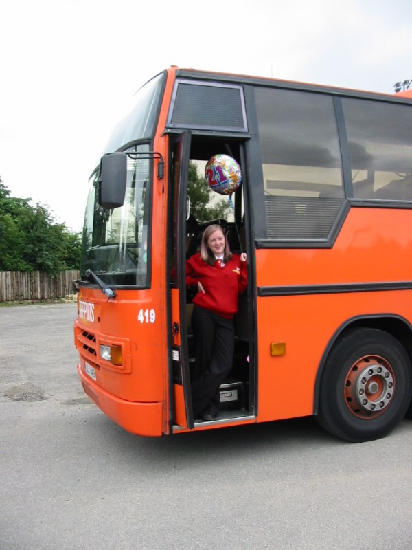 Richard Morgan, also a driver on city Sightseeing took some pictures of his young daughter in her early days of enthusiasm for buses. It is great to see the younger generation coming along to continue our hobby in the years to come. Last week I featured Carole on her 21 birthday and we also have some pictures of her with a Tappins coach which she hired to take her friends on a birthday outing.