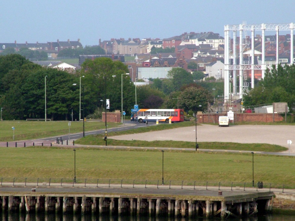 Buses in the landscape - taken from deck of DFDS "Queen of Scandinavia"