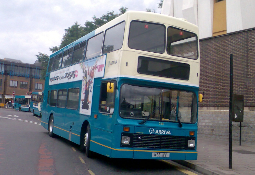 "080808 - Today's Arriva update comes from Aaron Tibbett, Volvo Olympian 5138 (N38JPP) has returned from repaint at Watford, fitted with a new LED destination display."